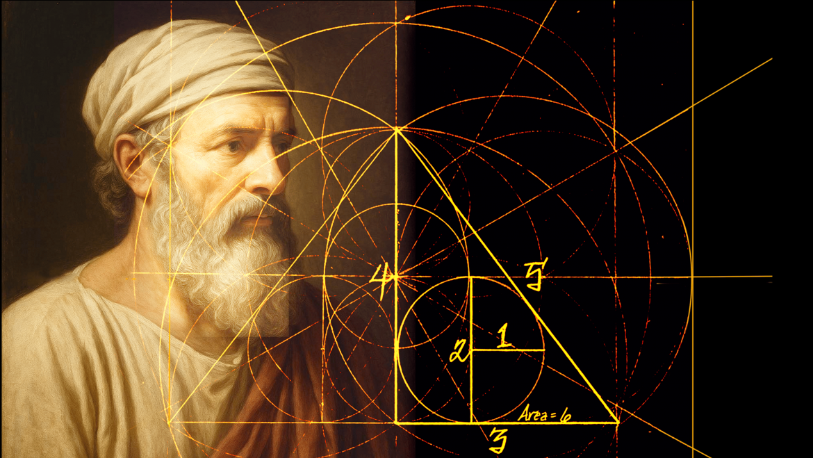 La demostración del teorema para la obtención del ángulo recto sexagesimal y el helenocentrismo se atribuyen a Pitágoras de Samos. La aplicación y utilización de este conocimiento para satisfacer diversos menesteres de la vida pertenece a las ancestrales culturas autoras y mentoras de la tradición occidental. La academia por él fundada impulsó el desarrollo de las matemáticas en la antigua Grecia. La significación de Pitágoras también se distingue en el ámbito del devenir de las IDEAS universales: su pensamiento, consecuente con sus circunstancias, está matizado por el misticismo y el esoterismo de las antiguas religiones y filosofías del Extremo y Medio Oriente.